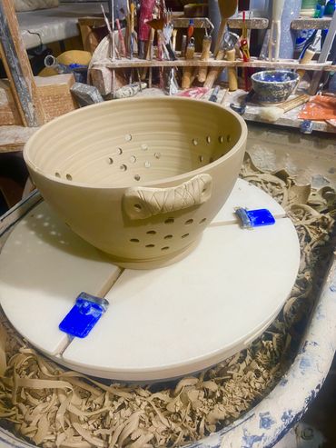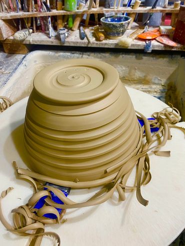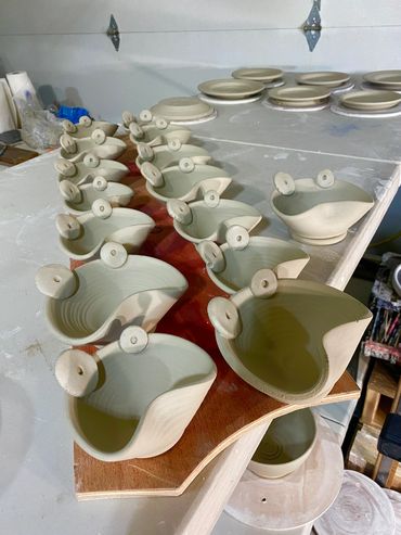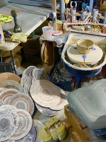 Here's just some of the things that go into creating, trimming, firing, glazing, firing again, and selling, small batch handmade stoneware pottery. And don't underestimate the need to throw a big stick or the shop dog won't let you get much done.